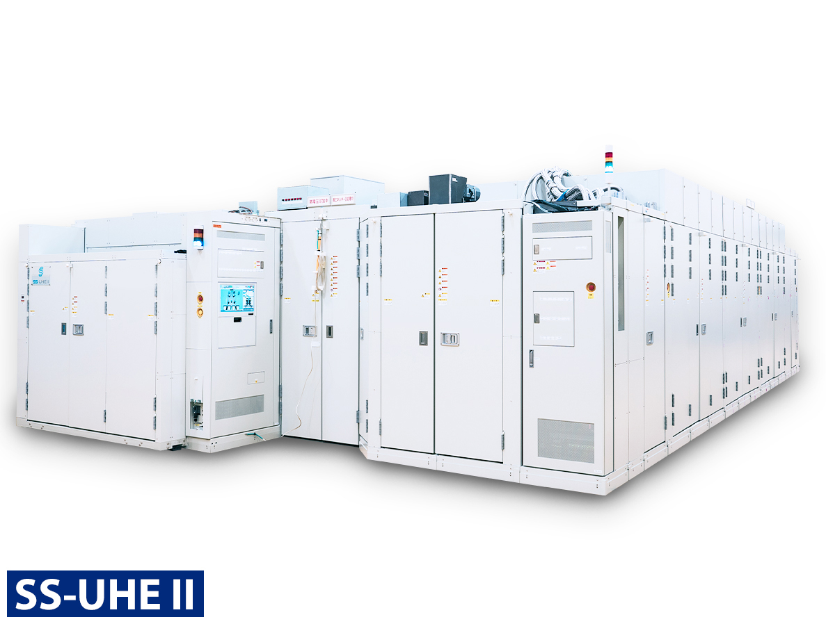 We have also started to provide the S-UHE single-wafer ultra-high energy implanter that enables implantation in an ultra-high energy region exceeding the energy range covered by conventional high-energy implanters and with unconventionally high precision. Equipped with a linear accelerator system that has a long track record with the HE3 series, the S-UHE achieves high-precision beam parallelism and high-precision implantation uniformity across the wafer surface by adopting a single-wafer transfer system and a parallel optical system with bilateral symmetry ion beam, which is a concept held in common with high-current implanters and medium-current planters.